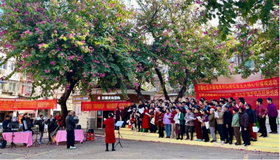 而在一旁的百姓大舞台,《歌唱祖国》《没有共产党就没有新中国》等革命歌曲联唱将活动推向高潮,邻里文艺爱好者纷纷登台,用嘹亮的歌声表达对祖国的热爱和对美好生活的向往。