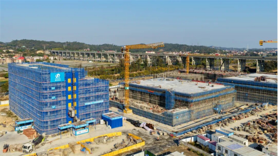 “目前,项目土建主体工程已按期完成,进入土建收尾和设备安装的关键阶段,施工总进度完成约90%。计划5月底完成上部公园框架层及附属设施、绿化等部分的施工,6月底进入调试、试运行阶段。”项目负责人吴少平介绍道,“我们加大项目资源投入,现场共有350余名工人,4台塔吊、3台汽车吊、2台施工电梯等大型机械设备投入使用,已全面进入高效作业状态,正在全力冲刺主体工程完工。”